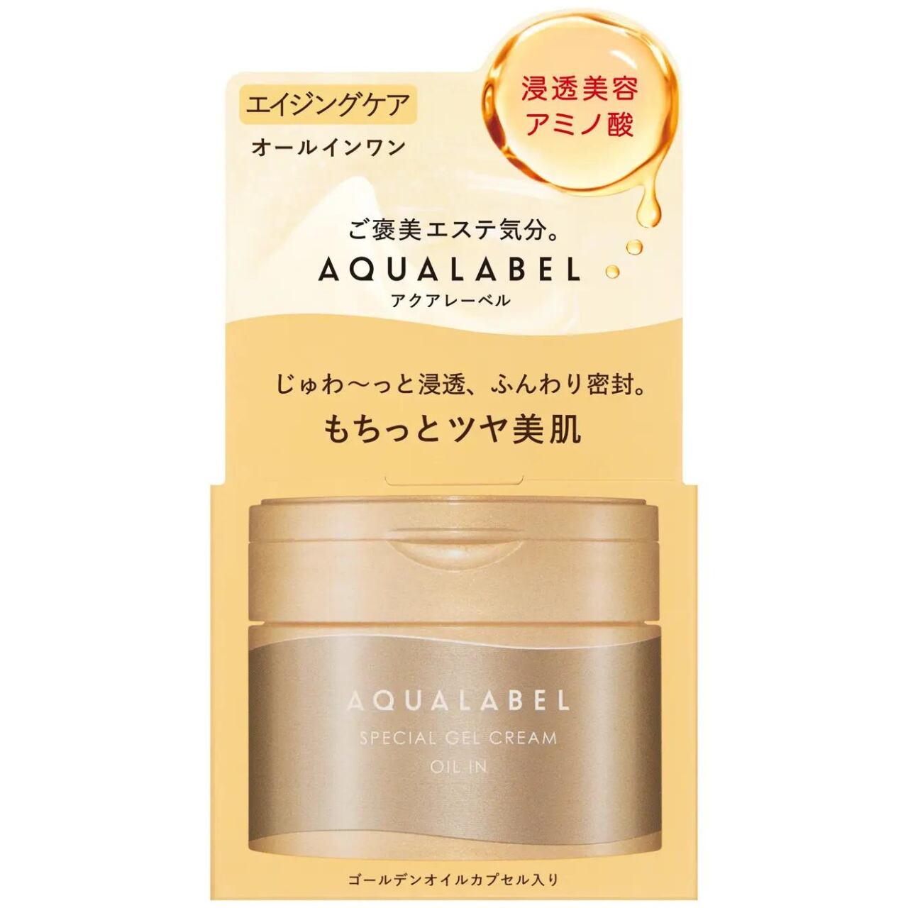Contains retinol palmitate (moisturising and skin-smoothing) and is concentrated with three types of oil close to the composition of sebum, which is often lacking in adult skin. *The multi blended oil capsules pop and blend into the skin, providing moisture, firmness and shine without stickiness. A jelly gel texture penetrates deep into the skin. Moisturises (D-glutamic acid, DL-alanine, DL-methionine) and gives skin a bright, translucent complexion. Highly functional all-in-one gel cream with five functions in one product (lotion, emulsion, cream, serum and mask).⦅AQUA LABEL is one of the SHISEIDO owning brands⦆